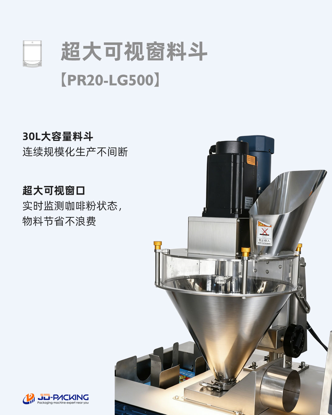 ☕ 当精品咖啡遇上工业级包装,如何在风味与产能之间找到最优解?捷鼎机械全新推出的 PR20-LG500 粉末螺杆给袋式包装机,以硬核技术为咖啡粉行业带来了高效、稳定、精准的包装解决方案。