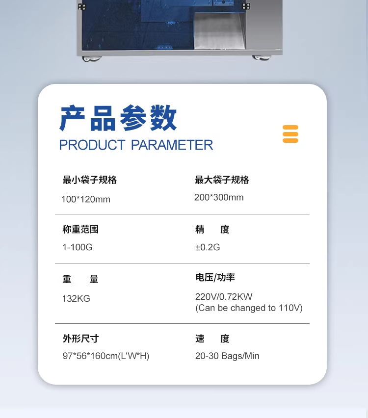 | 150kg | 15-30(袋/分钟) | 97*57*150厘米(长*宽*高) |